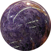 Charoite is lavender to purple in color with a pearly sheen. Charoite has an unusual swirling, fibrous appearance that is easy to recognize. Charoite is quite rare, and has only been found in Russia since 1978.