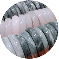 Jade is a green mineral that has been used in Asian art for centuries. In gemstone form, Jade is rarely faceted, and is instead smoothed into a rounded cabochon to better display jade's natural "glow". Jade green ranges from a very light pale green, to a translucent apple green, to very dark opaque green.