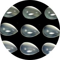 Moonstone is a pale gemstone that shows strong adularescence - an optical effect where light appears to move across the gemstone showing a rainbow of colors, and the gemstone appears to "glow". Moonstone can be transparent, translucent or opaque, and often is found in colorless, white and gray. Moonstone gemstones are most commonly rounded cabochons to better show of their unique optical properties.