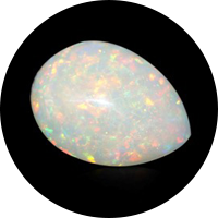 Opal is a gemstone that ranges in color from white to black, and every color in between. Opal is most easily recognized by its special optical properties - high quality opal gemstones have a rainbow of color play inside them that looks like glitter or confetti. Opals are almost never faceted, but instead are smoothed into cabochons. Common opal also exists, but does not show a strong display of color play, and comes in a variety of opaque colors including green, white and purple opal.